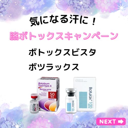 最近一気に暑くなり、脇汗が気になる季節が近付いてきましたね💦毎年恒例、脇汗対策のボトックス注射のキャンペーンのお知らせです💉早めの時期にボトックス注射を打っておくと、これから更に暑くなる時期に脇汗やにおいを気にすること無く、快適に過ごせます😊 ボ…