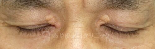 まぶたの黄色のできものは「眼瞼黄色腫」の可能性があります。 眼瞼黄色腫は見た目は黄色~黄白色の平べったいできもので、上まぶたの目頭近くの皮膚に出やすい傾向があると言われていますが、下まぶたにも出ることがあります。 眼瞼黄色腫は名前の中に「腫…